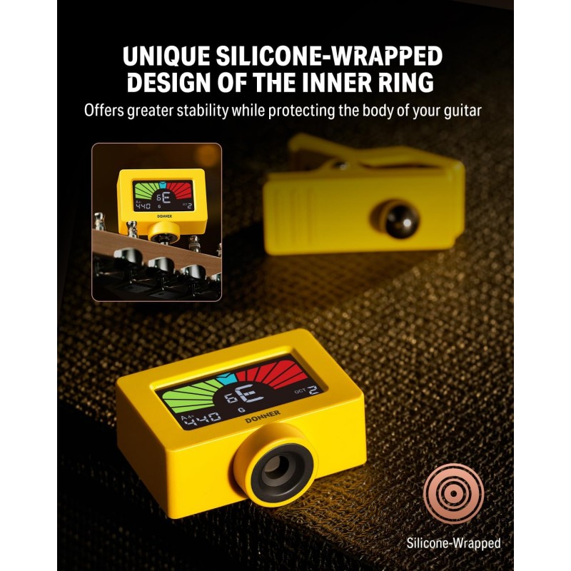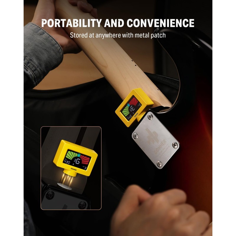 Designul magnetic inovator permite acordorului să adere în siguranță la orice parte metalică a chitarei, asigurând o acordare stabilă chiar și în timpul spectacolelor live. Include un petic metalic pentru depozitare convenabilă pe chitară. Structura de aspirație magnetică reduce, de asemenea, uzura structurală și îmbătrânirea.