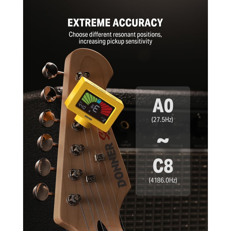 - Designul detașabil permite selectarea mai multor poziții rezonante pe instrument, îmbunătățind sensibilitatea microfonului. Acoperă o gamă largă de acordare de la A0 (27,5 Hz) la C8 (4186,0 Hz), suportând diferite moduri de acordare, inclusiv 12-TET, chitară, bas, vioară, ukulele și banjo.