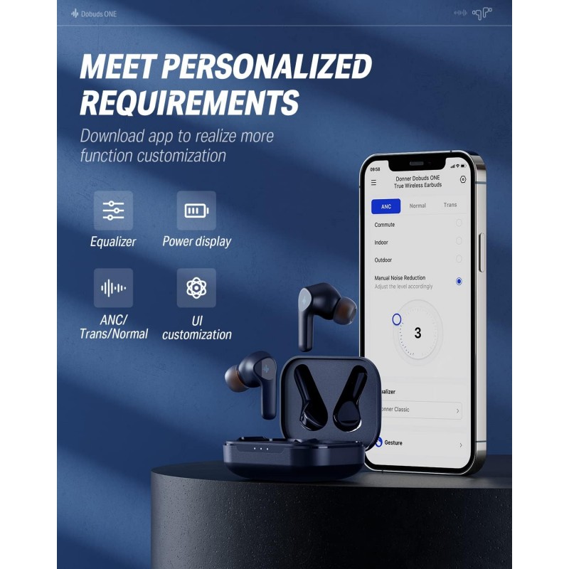 Puteți descărca aplicația pentru a personaliza funcții suplimentare (personalizarea EQ, afișarea puterii, numele căștilor, comutarea modului de transparență a reducerii zgomotului, personalizarea interfeței utilizator etc.). Îndeplinește o varietate de cerințe personalizate.