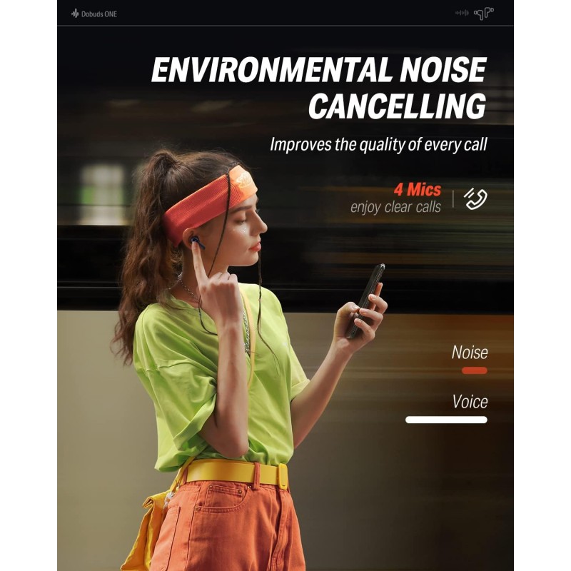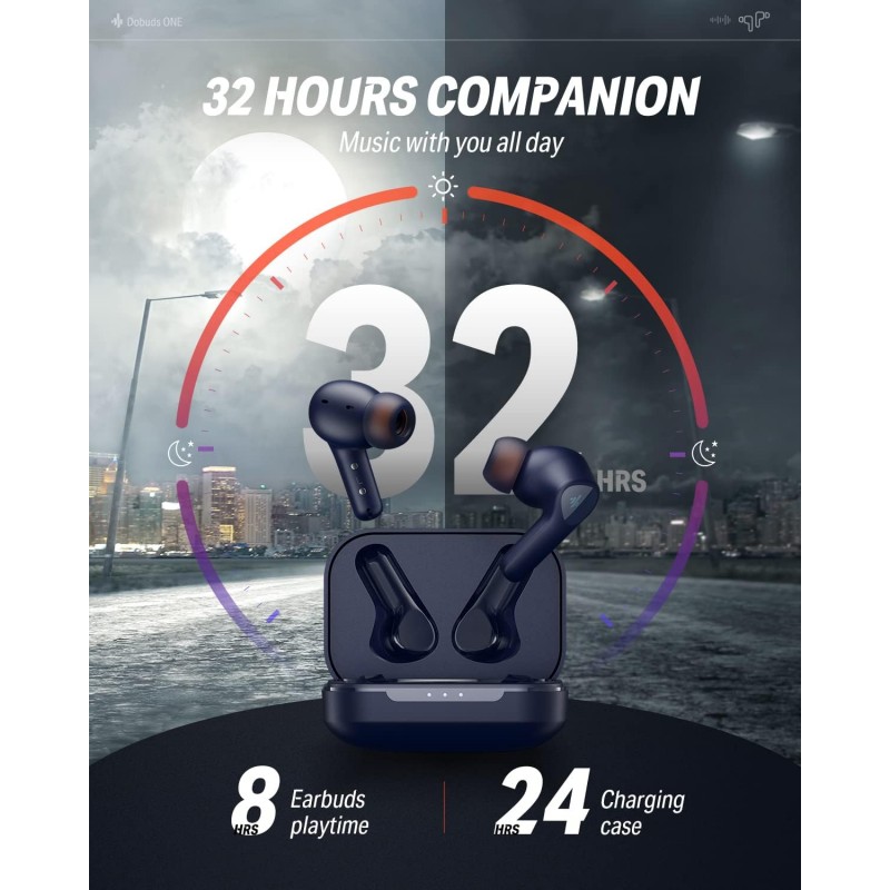Cu un port Type-C și tehnologie de încărcare rapidă, la fiecare 10 minute de încărcare oferă 2 ore de redare a muzicii. Acest lucru crește timpul de utilizare, permițând reîncărcarea lor mai puțin frecventă. Durata de viață a bateriei pentru o singură ureche este de 8 ore (când ANC este dezactivat), iar carcasa de încărcare poate efectua 3 cicluri complete de încărcare. Dobuds ONE are un total de 32 de ore, pentru a fi companionul tău de lungă durată.