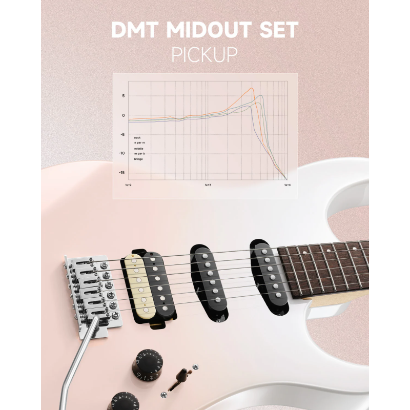 Echipată cu dozele DMT Midout Set, dezvoltate de DONNER LAB, în configurație HSS, oferă un sunet stabil, potrivit pentru genuri de la blues la high-gain, oferind un control tonal precis pentru un sunet rafinat.