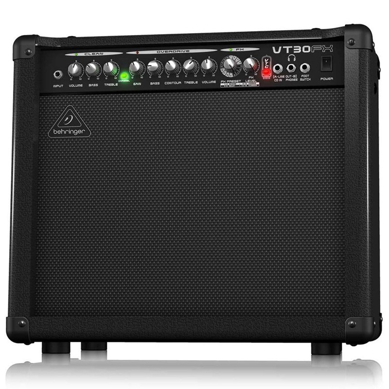 Seria VT a venit cu noua tehnologie de simulare a lampilor ( VTC ) ca sa intampine pretentiile oricarui chitarist care doreste un sunet cat mai bun la un pret cat mai mic. BEHRINGER VT30FX este un amplificator pentru chitara electrica echipat cu un difuzor Bugera de 10 toli care livreaza o putere de 30W. Cele doua canale ( Clean/Overdrive ) vin cu propriul EQ si control pentru contur ca sa ai la dispozitie versatilitate cat mai mare si sa poti construi tonuri dupa bunul tau plac. Procesorul digital de efecte vine cu 4 efecte de modulatie absolut necesare oricarui chitarist ( Flanger, Chorus, Delay, Reverb ).
