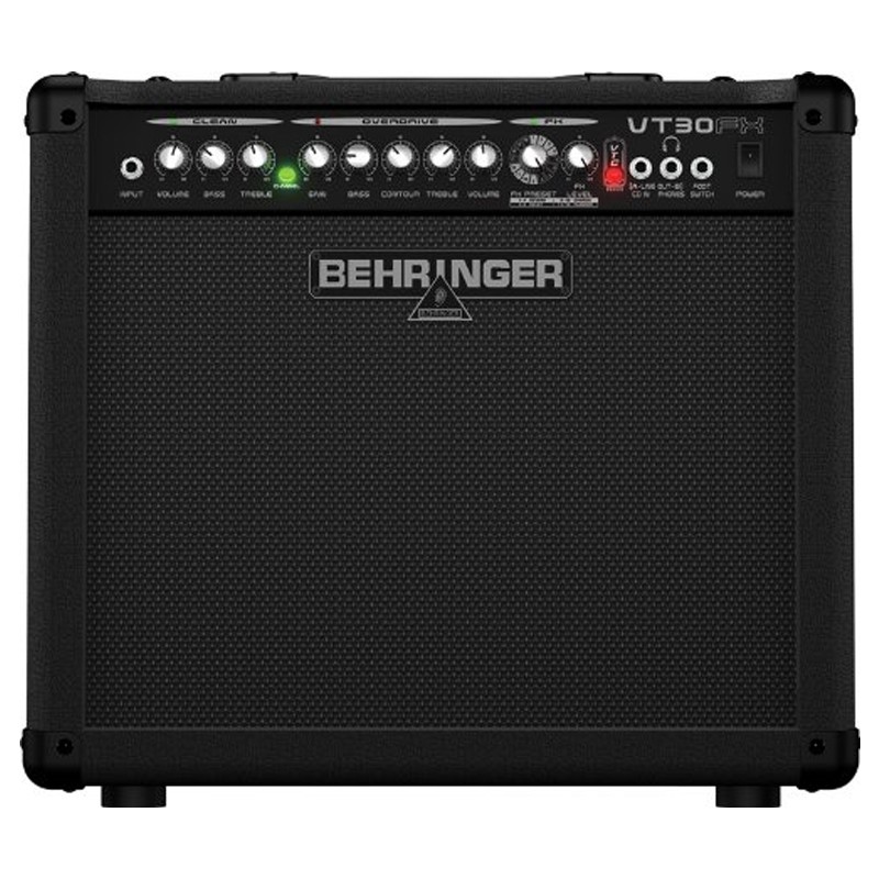 BEHRINGER VT30FX combo chitara. Echipat cu difuzor de 10" BUGERA. Putere: 30 W/4 Ohmi Conectori intrare / iesire: 1/4" TS nebalansat / 1/4" TRS nebalansat. Convertor sigma-delta de 24 biti / 40 kHz. Dimensiuni (I x L x A): 430 x 475 x 240 mm. Greutate: 10.9 kg.