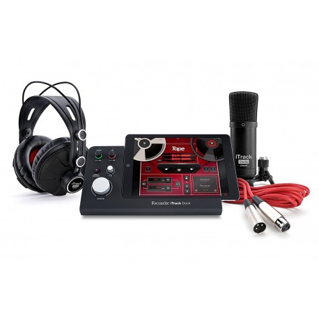 Focusrite iTrack Dock Studio Pack, set de inregistrari audio pentru iPad, contine interfata audio iTrack Dock, casti audio, microfon condenser cu diafragma mare si cablu de microfon, USB.