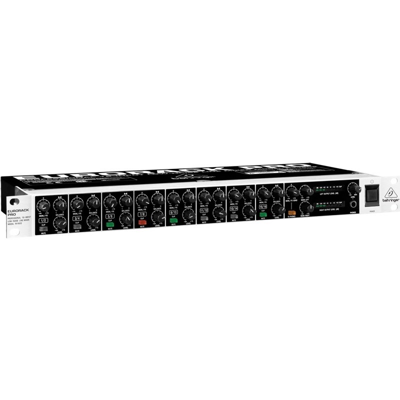 EURORACK PRO RX 1602 este un mixer analog profesional de linie, multifunctional cu 16 canale. Poate fi folosit ca tablou de comanda foarte flexibil, sub-mixer multifunctional, monitorizare multi-track, FX return sub-mixer si asa mai departe. Are 16 intrari balansate, fiecare canal poate fi utilizat mono sau stereo.