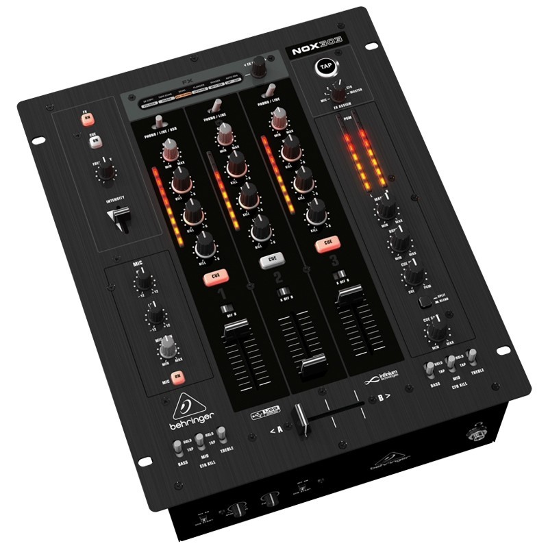 Seria NOX a fost proiectata pentru a oferi performante pentru orice buget, astfel oricine poate face primul pas in lumea DJ-ilor. NOX303 este un mixer performant cu interfata USB ce permite conexiunea Plug & Play cu orice computer pentru inregistrarea si redarea oricarui format de fisier audio. Mixerul este echipat cu 3 canale, Crossfader optic VCA Infinium, EQ cu 3 benzi, 3 intrari linie, 3 iesiri Phono/Line si un preamplificator de microfon Xenyx. Poti adauga pana la 12 efecte digitale oricareia dintre iesiri, microfonului sau direct pe Master, si pot fi modificate printr-o serie de parametri ce iti ofera multe posibilitati de mixare. Printre efecte se numara 2x Copy, tap echo, vocoder, flanger, phaser, reverb si multe altele. In pachet este inclus si programul Traktion 4 ce permite inregistrari si mixaje profesionale. Pentru a intra in posesia programului trebuie inregistrat produsul pe site-ul producatorului si sa urmaresti instructiunile.