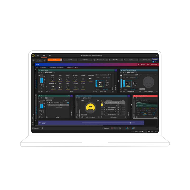 Ideal pentru exersare, performanță sau producție. Sensory Percussion oferă o bibliotecă de sunete în continuă expansiune, controale dinamice de viteză, module FX și instrumente puternice de secvențiere pentru nevoile bateristului modern.