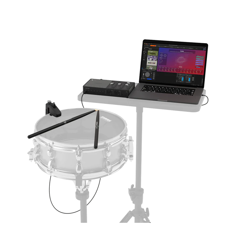 Pachetul EVANS Hybrid Sensory Percussion Starter Pack aduce întreaga putere a Sensory Percussion într-o configurație simplificată, cu o singură tobă. Transformați instantaneu orice tobă cu membrană acustică sau mesh într-un instrument electronic de calitate studio, fără a compromite senzația la atingere. Deblocați sute de sunete de tobă, sample-uri melodice și efecte live cu software-ul Sunhouse™ Sensory Percussion 2. Extindeți-vă sistemul Sensory Percussion cu până la șase Sensori suplimentari folosind interfața audio Portal inclusă. Ideal pentru: Tobă hibridă, control live sample și loop, design sonor