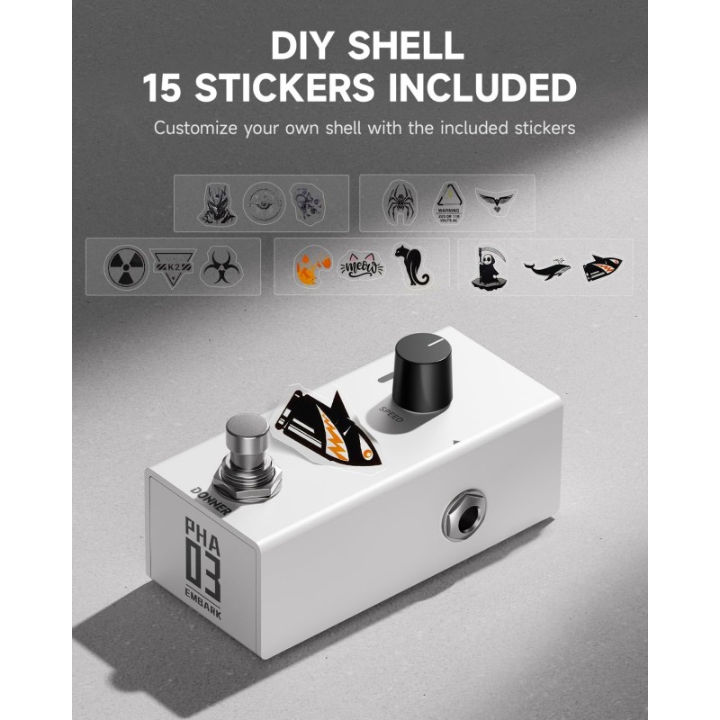 Personalizeaza carcasa - Cu autocolantele incluse sau alte decorațiuni pe care le aveați deja, vă puteți exprima liber creativitatea și vă puteți exersa imaginația, personalizând propria carcasă a pedalei de chitară
