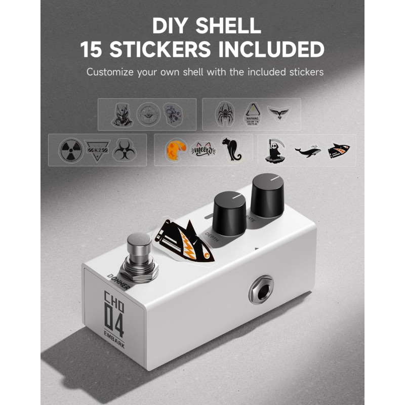 Carcasă DIY - Cu autocolantele incluse sau alte decorațiuni pe care le aveți deja, vă puteți exprima liber creativitatea și vă puteți exersa imaginația, personalizând propria carcasă a pedalei de chitară