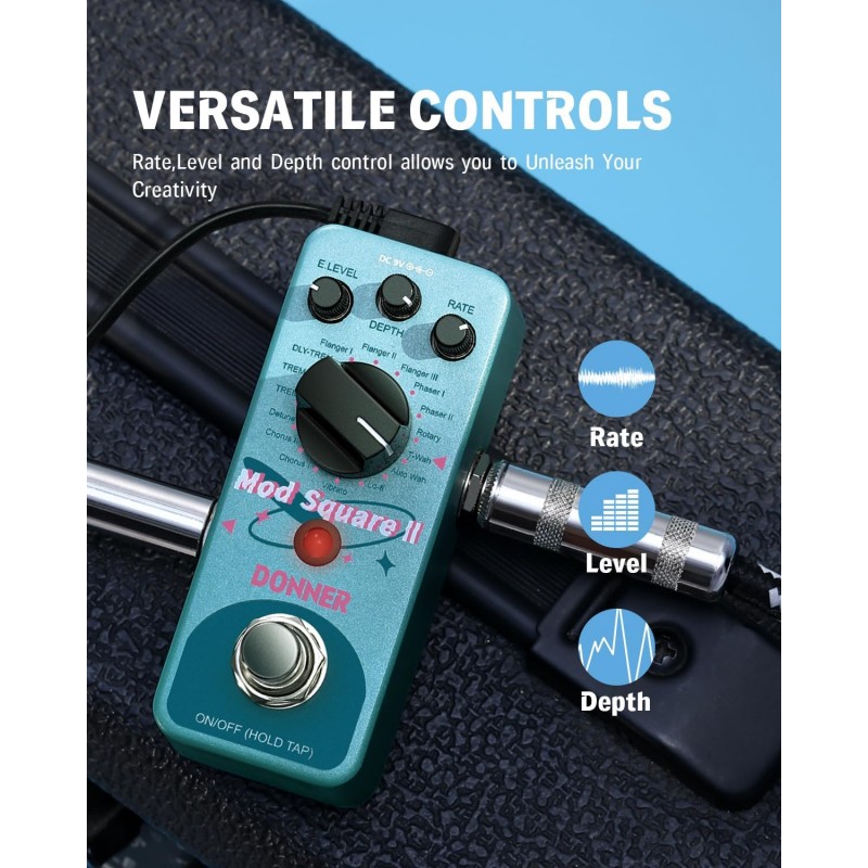 Ușor de Utilizat: Mod Square Ⅱ dispune de comenzi intuitive care vă permit să reglați rata, nivelul și profunzimea efectelor dvs.; Nu trebuie să fiți un chitarist experimentat pentru a utiliza această pedală. Este perfectă atât pentru începători, cât și pentru profesioniști