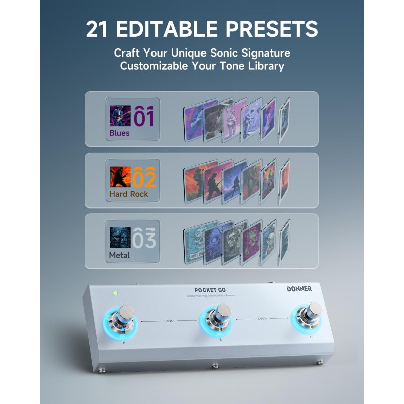 - 21 de preseturi editabile pentru schimbări rapide de ton.