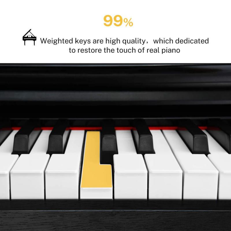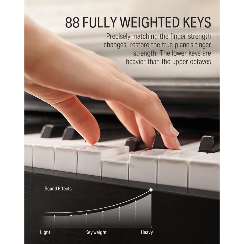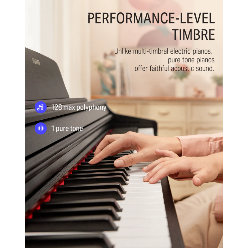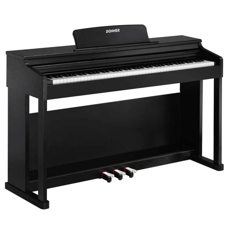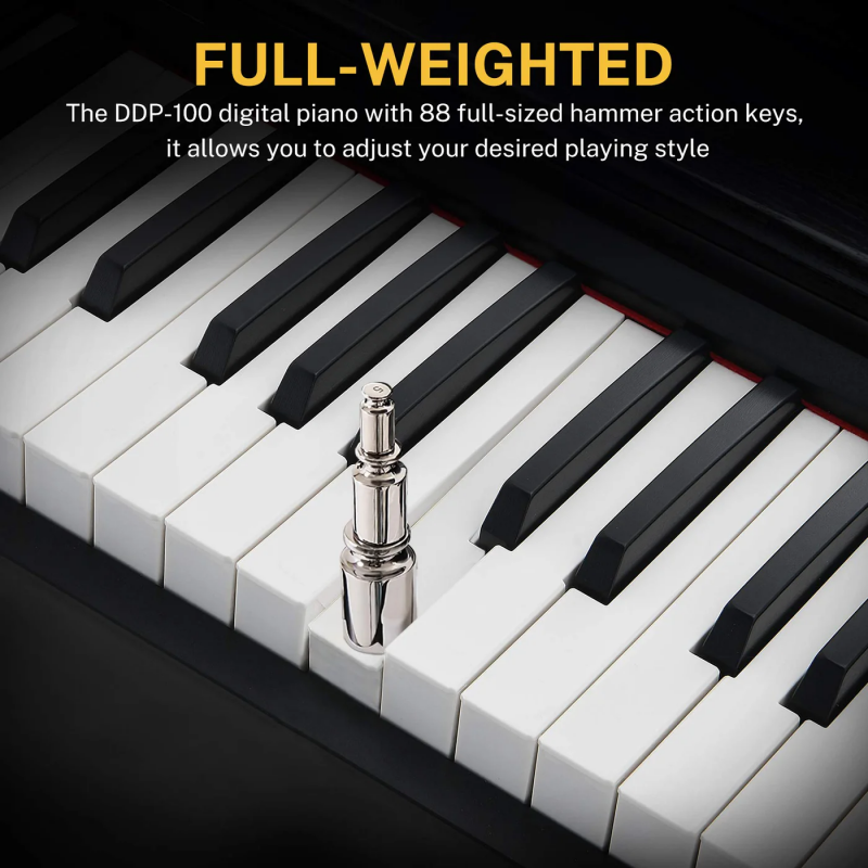 Pian digital Donner DDP-100 pentru începători cu 88 de clape ponderate de dimensiuni normale, cu acțiune puternică a ciocanului, care restaurează cu adevărat senzația reală a pianului original, vă cultivă interesul pentru pian, vă ajută să exersați o postură bună de interpretare și să progresați în cel mai rapid timp.