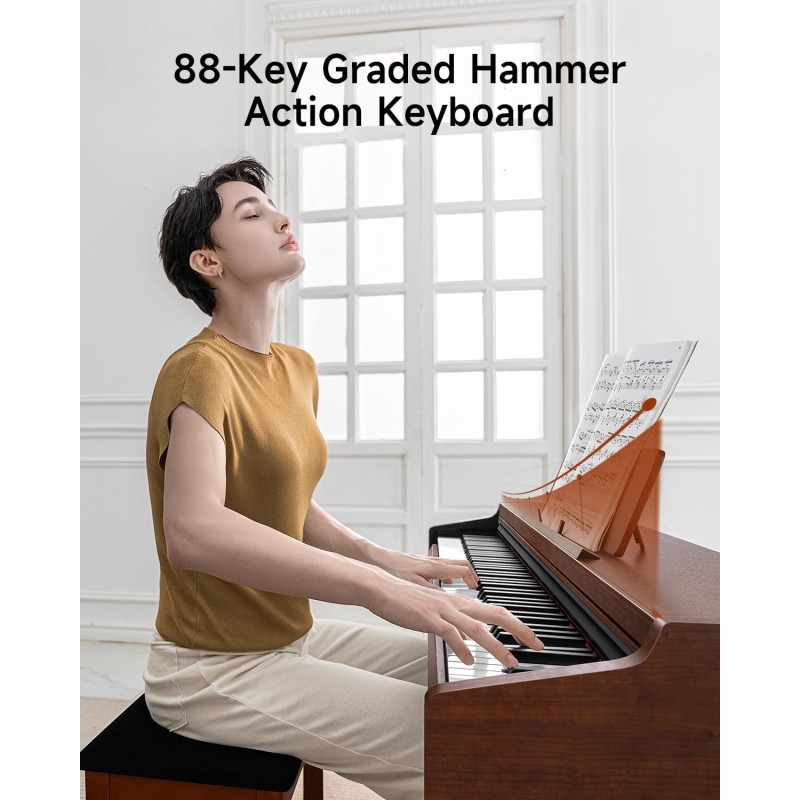 Claviatură profesională: Claviatură cu 88 de taste cu acțiune Hammer și curbe de viteză pe 4 niveluri, permițând instrumentiștilor să ajusteze răspunsul la atingere pentru o experiență de interpretare expresivă și realistă.