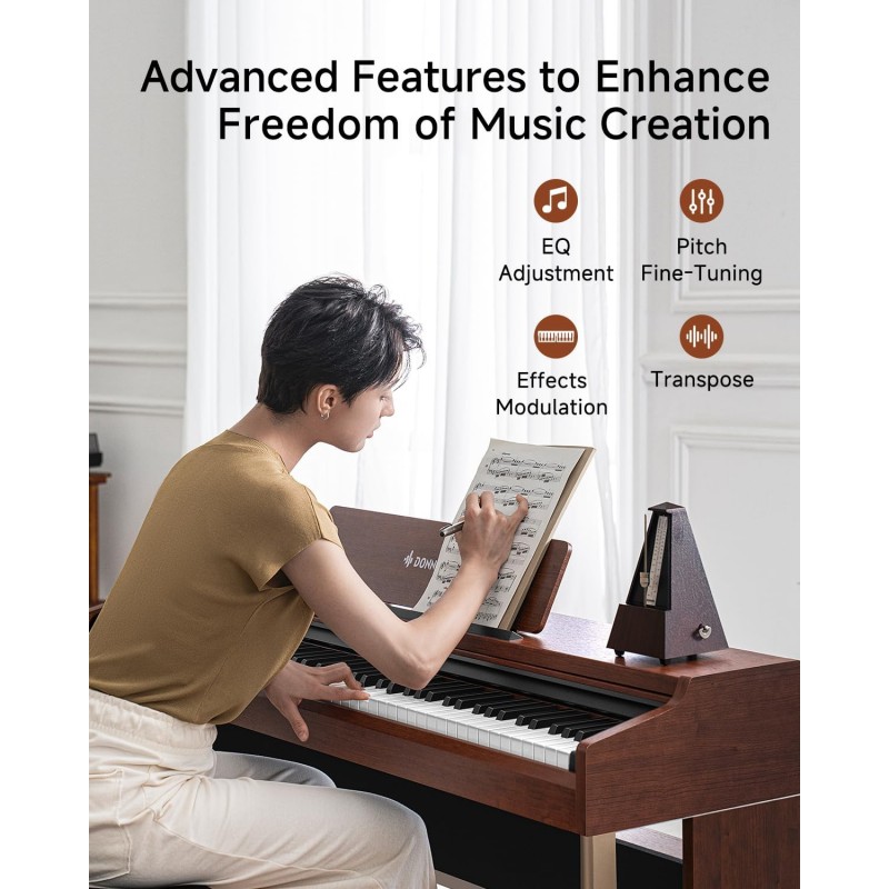 Învățare ușoară: Funcție de învățare / Mufă audio / Înregistrare / Se conectează la produse iOS / Android / Windows, inclusiv software-ul Melodics și aplicația Donner Music pentru lecții interactive și resurse de practică, ideală pentru stăpânirea tehnicilor.