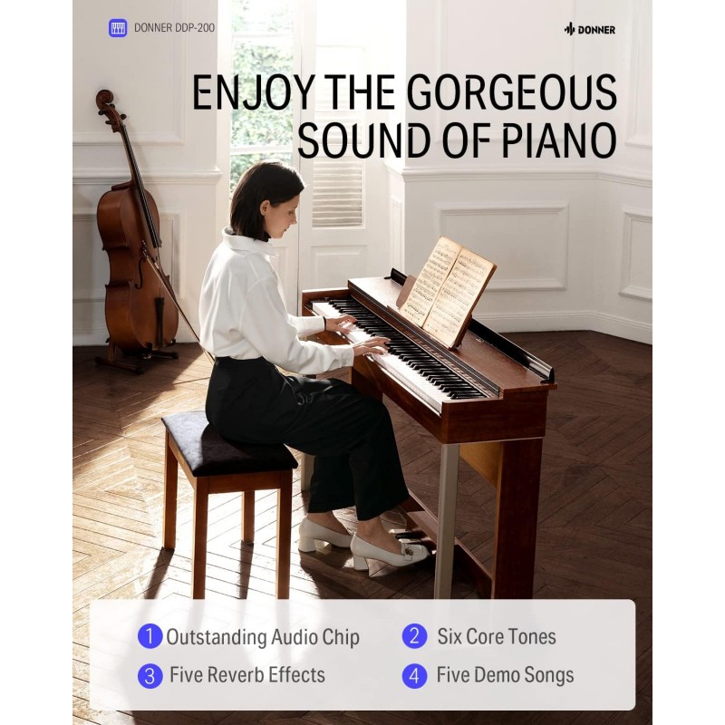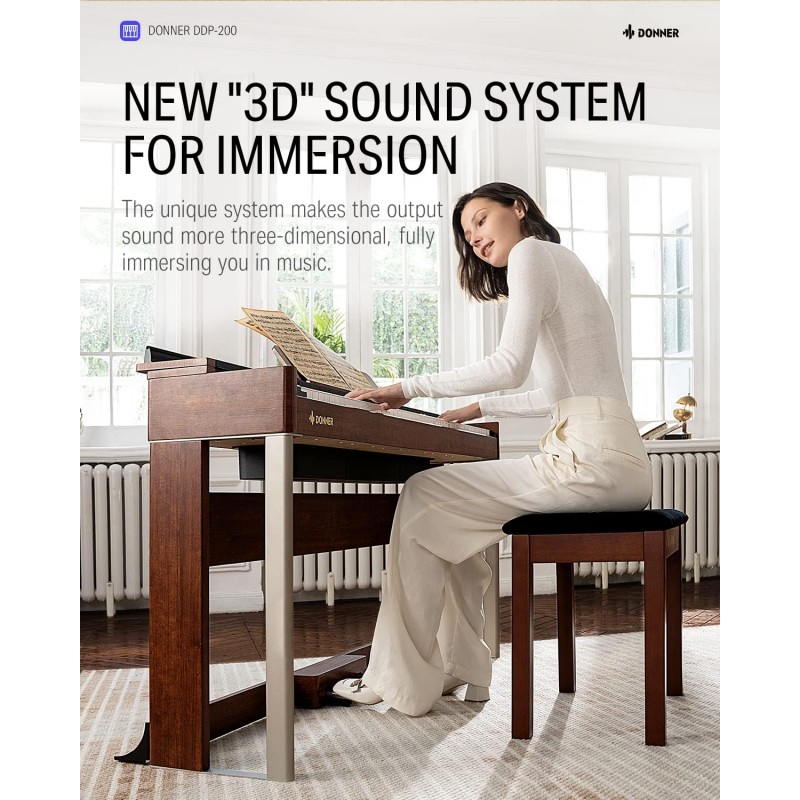 DDP-200 DONNER pian digital, 88 clape grele, Brown EC3008