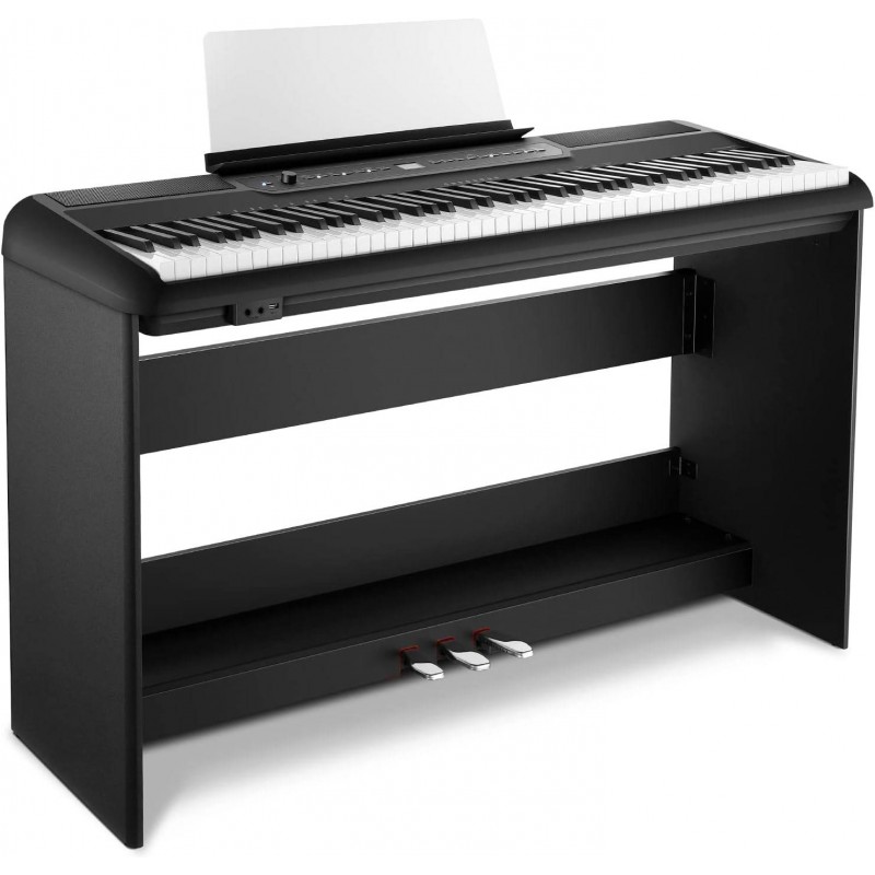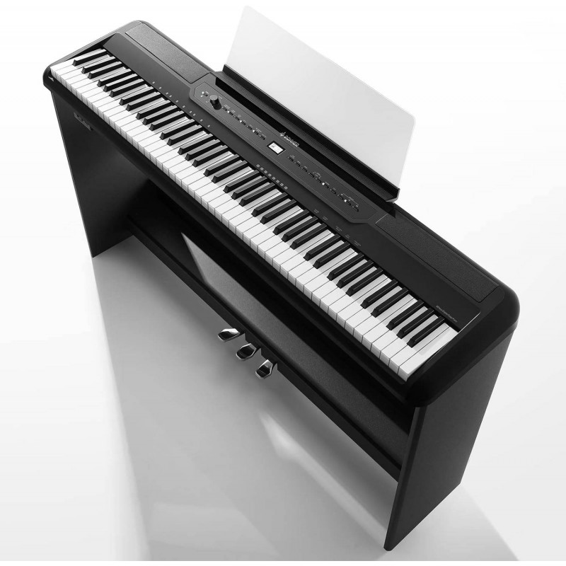Pachet pedală și stativ - Include o configurație triplă de pedale (soft, sostenuto, sustain) și un model opțional de stativ din lemn
