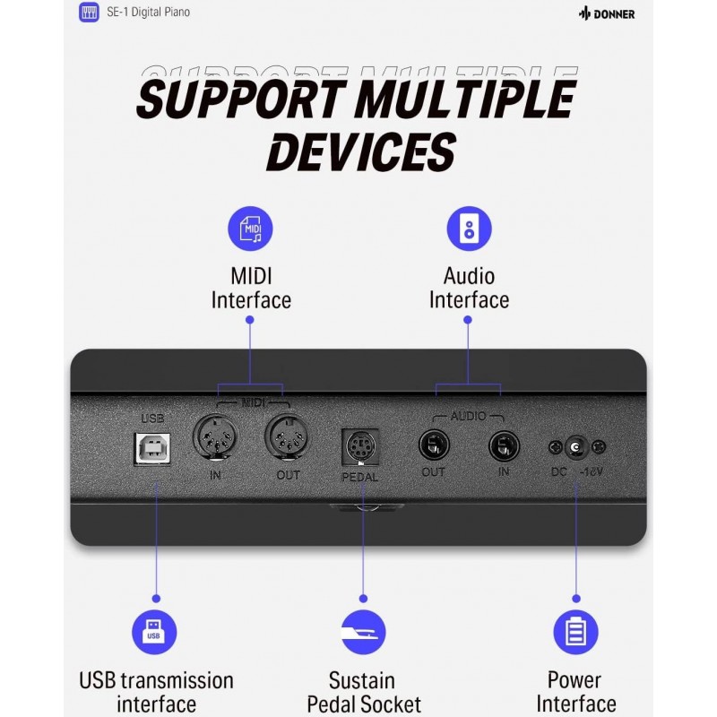 Bluetooth MIDI + USB și intrare/ieșire audio - Conectați-vă wireless la aplicații educaționale, DAW-uri sau redați conținut în flux, alături de opțiuni standard de ieșire MIDI și audio
