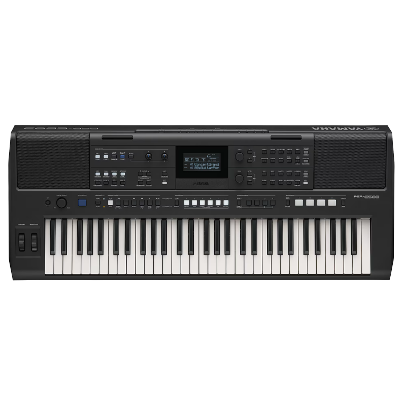 Yamaha PSR-E583 este o orga electronica cu 61 de clape cu detectare de dinamica, polifonie de 64 voci si un sound engine extins cu 890 de sunete, inclusiv 19 sunete de tip "Super Articulation Lite Voices". Dispune de functii de Dual/Layer, Split, 345 stiluri de acompaniament, One Touch Setting si 32 memorii de inregistrare. Integreaza control de pitch bend si modulatie, buton Motion Effect, doua knob-uri Live Control si functii avansate de armonizare, arpegiu si sampling rapid. Sistemul audio 2 x 12 W cu Mega Boost ofera un sunet puternic, iar conectivitatea completa (USB audio/MIDI, microfon, AUX, footswitch) o face potrivita atat pentru studio, cat si pentru scena. Include alimentator si stativ de partituri.