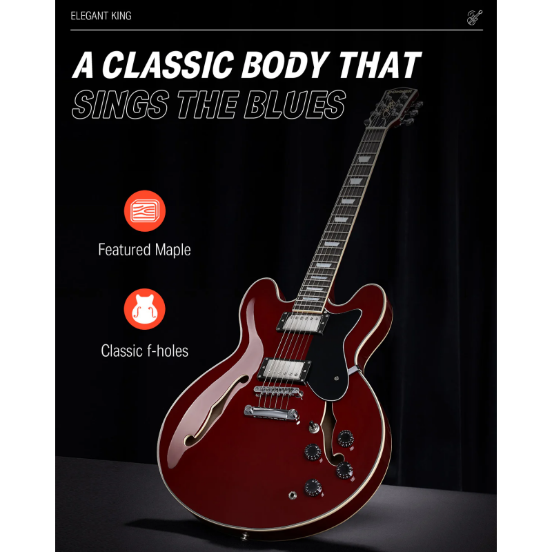 Cu corpul său elegant de jazz și găurile clasice în formă de F, aceasta chitara amintește de maeștrii blues de altădată. Detalii frumoase, precum un furnir elegant de arțar, accentuează fibra naturală a lemnului și conferă o senzație de clasic. Cu atractivitatea sa atemporală, chitara 335 este o chitară care îi încântă pe pasionați