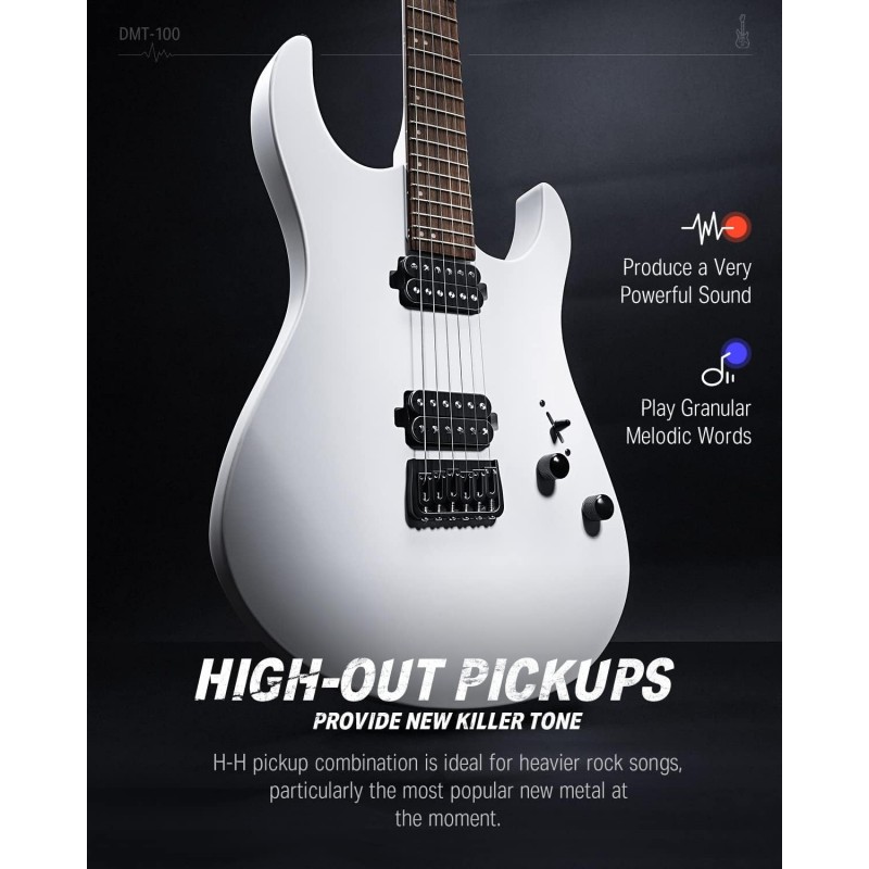Doze H-H High-Out: Combinația de doze H-H pentru chitara electrică Donner DMT-100 este ideală pentru melodii rock mai grele, permițându-vă să cântați fraze melodice granulare pe scenă. Sistemul dinamic de control al tonului dispune de comutatoare cu 3 căi cu un buton de ton care poate menține tonuri rock puternice și poate interpreta o gamă largă de stiluri muzicale
