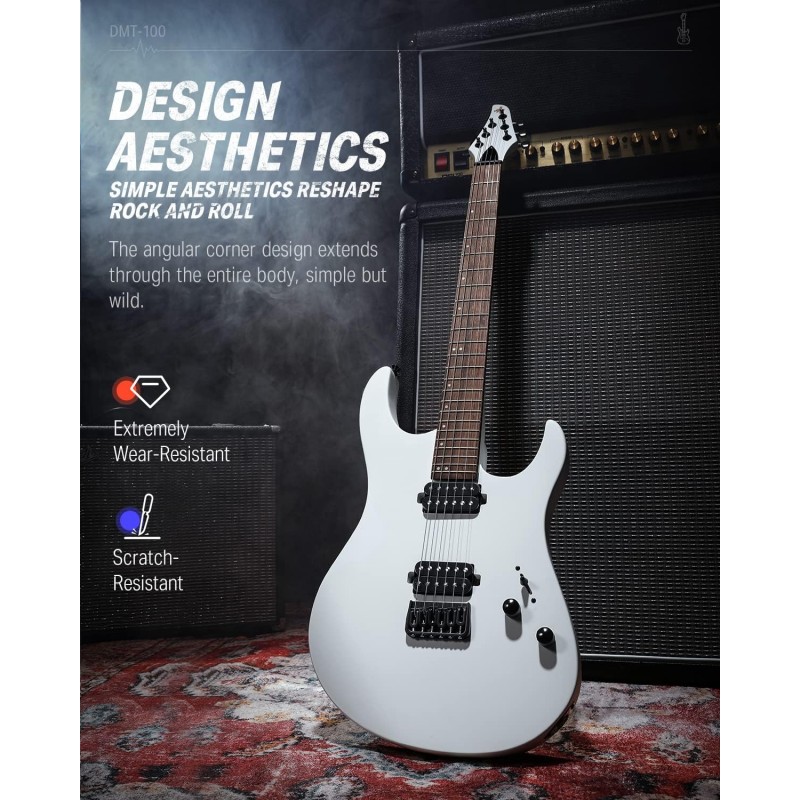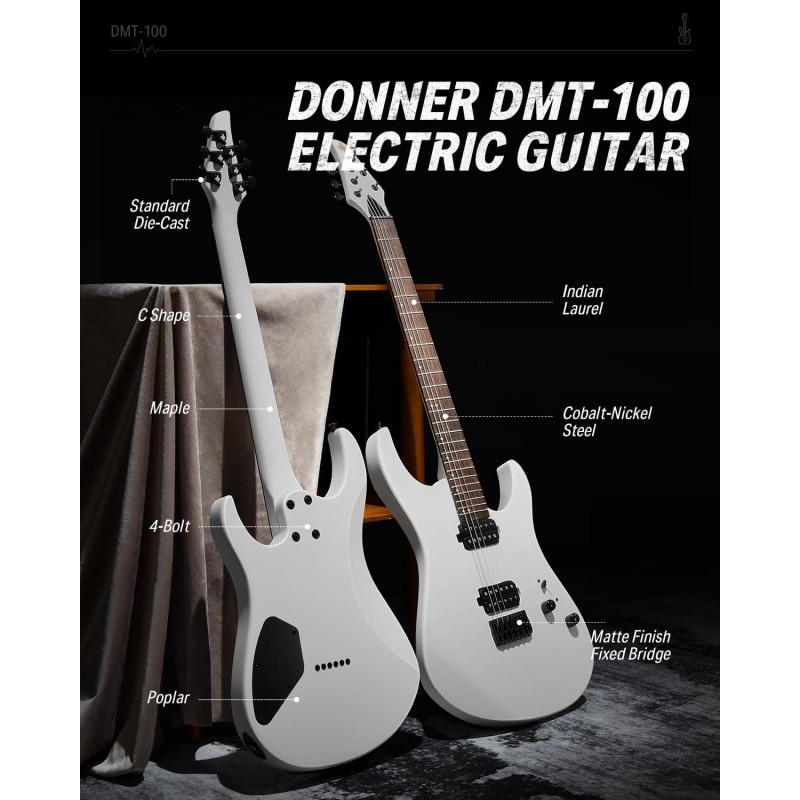Gât în formă de C: Tastiera din dafin indian, corpul solid din plop și gâtul din arțar în formă de C oferă un ton puternic. Cu 24 de taste din cupru-nichel, chitara electrică Donner metal oferă o gamă mai largă de tonuri și facilitează cântatul la taste mai înalte decât cele 22 de frete, fiind ideală pentru rock and roll.
