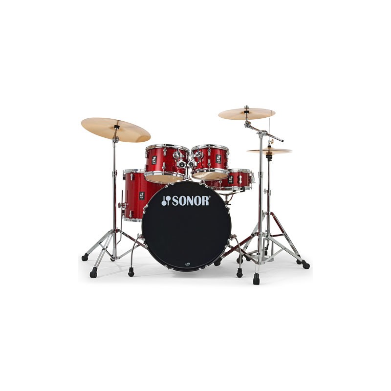 Sonor AQX Stage Kit Red Moon Sparkle - Set de tobe acustice din 5 piese în configurație standard cu hardware cromat, shell-uri din lemn de plop, fețe pentru toba mare presurdinate, șuruburi de acordaj AQ cu sistem ”TuneSafe” și cinele fabricate din B8 Bronze.