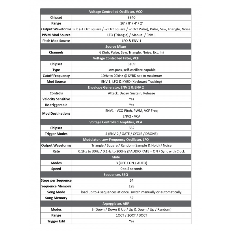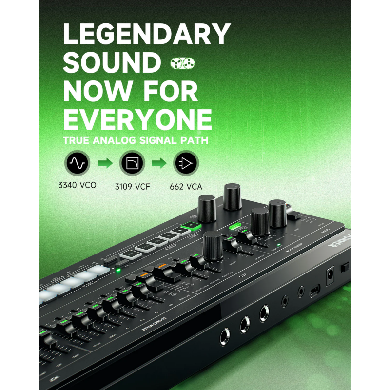 Inspirat de legendarul sintetizator analogic mono din epoca de aur. Recreere fidelă din punct de vedere al sunetului și plin de caracteristici moderne pentru a se potrivi scenelor de producție și performanță muzicală actuale.