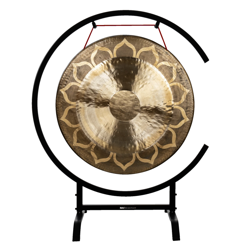 Elegant și modern, cadrul rotund pune în valoare gongul și îi oferă o stabilitate sigură. Suportul din oțel vopsit în negru permite gongului să se balanseze liber, creând o experiență sonoră uimitoare. Datorită dimensiunilor sale compacte, acest suport permite cântatul la gonguri atât pe masă, cât și pe podea. Cârligele pentru agățarea gongului sunt special căptușite cu spumă moale, iar picioarele sunt prevăzute cu inserții de plastic de protecție pentru a preveni deteriorarea mesei sau a podelei de către suportul gongului.