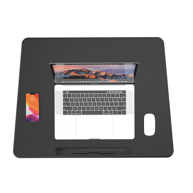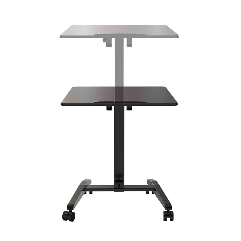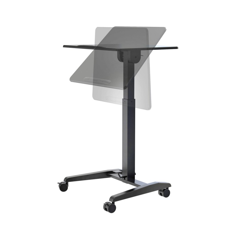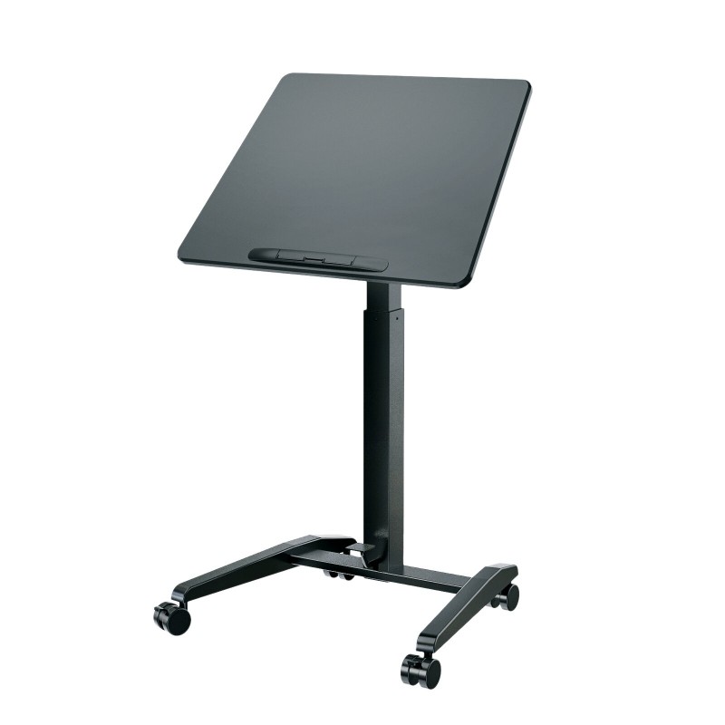 Flexibil, ergonomic și mobil - acest birou pentru laptop de înaltă calitate le are pe toate. Reglarea continuă a înălțimii atinge înălțimi de la 770 la 1.130 mm și este acționat convenabil prin pedală. Raftul mare din MDF, cu dimensiunile de 695 x 520 mm, poate fi reglat de la orizontală la 90°. Patru roți mari blocabile asigură mobilitate practică și o poziție sigură în picioare. Acest birou multifuncțional este ideal pentru utilizare în studio, acasă sau pe scenă și în afara ei.