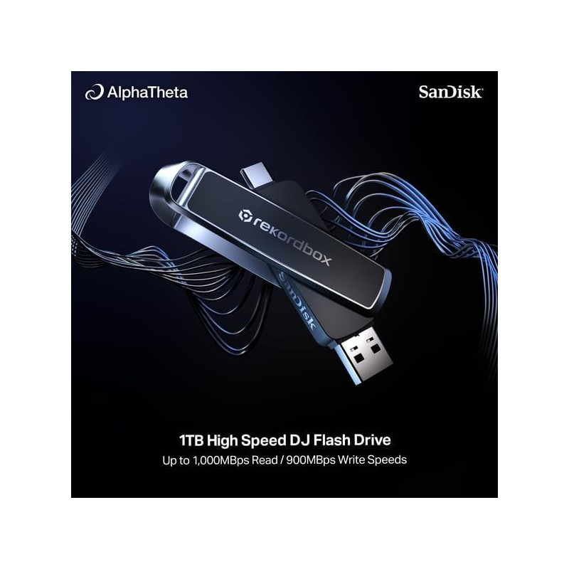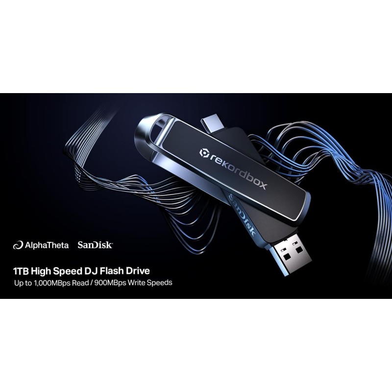 AlphaTheta SanDisk 1TB High Speed Dual DJ Flash Drive - Flash-Drive pentru DJ, cu viteze de până la 1000 MB/s la citire și 900 MB/s la scriere, gestionează fără efort biblioteci mari, fișiere high-resolution și transferuri rapide între dispozitive.