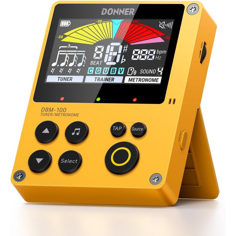 Acordor de metronom Donner, metronom digital reîncărcabil 3 în 1 cu mod de antrenament ritmic pentru chitară, bas, vioară, ukulele, cromatic, pian, instrumente de suflat, DBM-100 (galben)