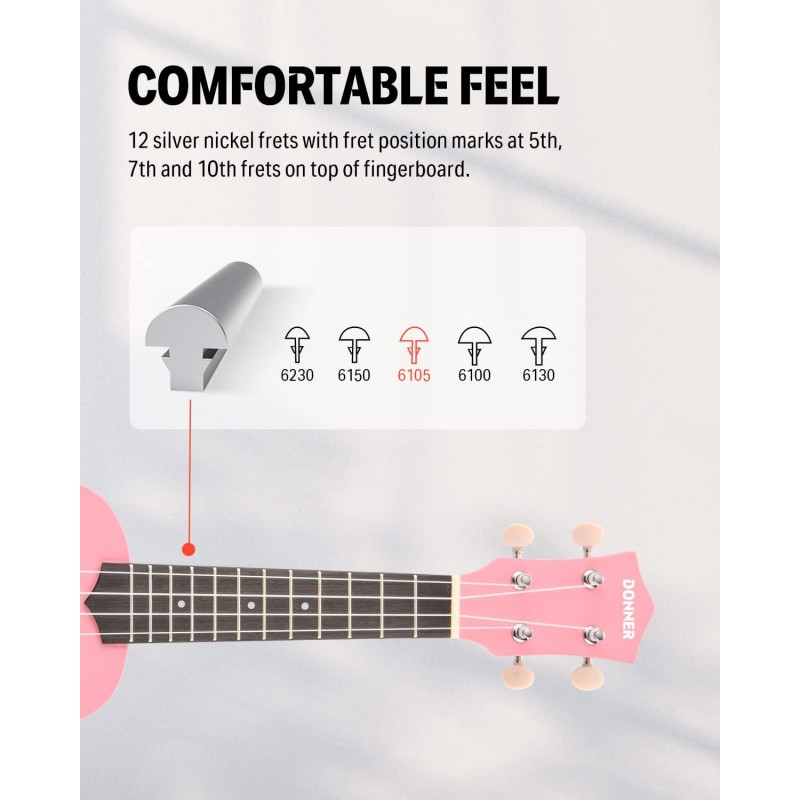 ♫ Ușor de învățat cu lecții video online gratuite: Căutați un instrument ușor de învățat pentru dvs. sau pentru copiii dvs.? Copiii, studenții sau adulții începători pot începe rapid cu ukulele Donner de 21 de inch și lecții video ONLINE profesionale gratuite de uku.
